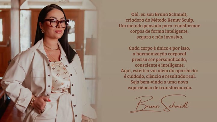 Assista ao vídeo e descubra como o Método Renuv Sculp, criado por Bruna Schmidt, pode transformar seu corpo de forma inteligente, segura e personalizada.